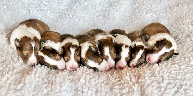 and white puppies 5 females and 3 males
